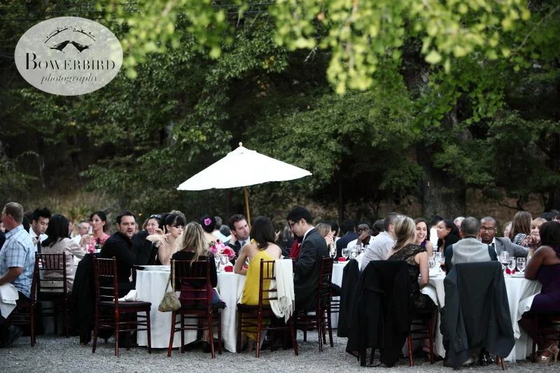 Lovely outdoor seating for the wedding dinner. © Bowerbird Photography 2013; Marin Art and Garden Center Wedding, Ross, CA.